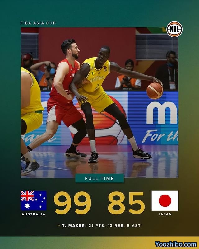 24直播网讯:北京时间7月21日下午18:30,2022年男子篮球亚洲杯1/4决赛资格赛,日本男对阵澳大利亚男篮。上半场,澳大利亚内线外线表现都非常出色,并不断拉开领先优势,半场比赛结束,澳大利亚队49-34领先日本队15分;下半场,两队外线远投飚分,全场结束,澳大利亚队99-85击败日本队,杀进半决赛。两队狂轰36个三分,日本队命中了20个三分!