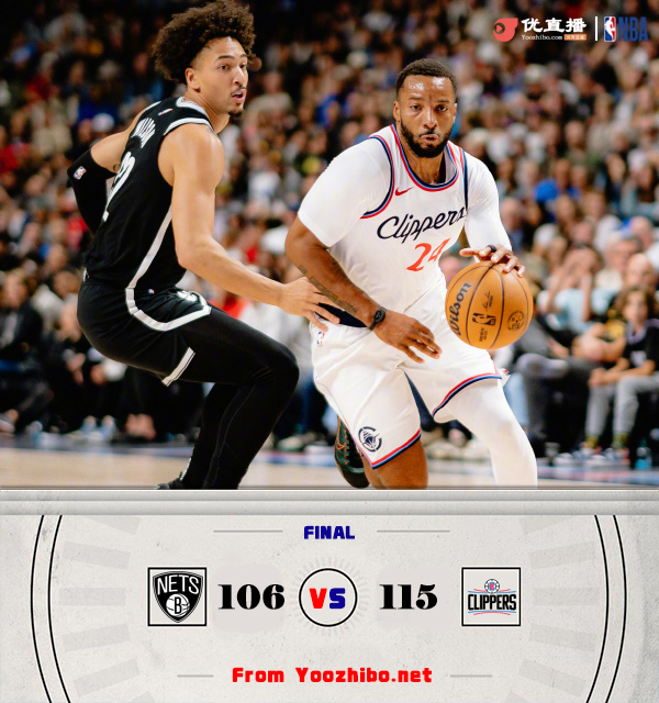 24直播网10月9日讯 NBA季前赛,快船今日迎战篮网,前者上场比赛被勇士绝杀,后者则是首次出战。比赛上来,场上就呈现出一边倒的局面,快船在三分钟的时间里打出一波12-0的完美开局,而篮网在接近五分钟的时间里只由芬尼-史密斯扣篮拿到两分,首节结束分差已经达到17分,次节局势完全发生改变,快船命中率急剧下滑只拿到20分,而篮网则是轰下39分,半场结束时已经反超2分;下半场回来,双方都是换下主力阵容,崔永熙在第三节最后1分25秒时获得上场机会,他的突破造成犯规但被快船挑战成功改成失误,末节快船一直握有十分左右的领先优势,崔永熙再次获得上场机会后利用罚球拿到首分,最终快船力克篮网拒绝连败。