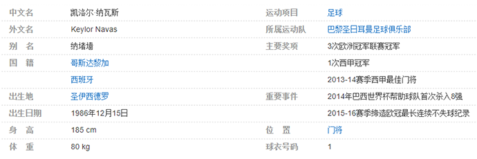 凯洛尔·纳瓦斯(Keylor Navas),1986年12月15日出生于哥斯达黎加圣伊西德罗,是一名拥有哥斯达黎加与西班牙双重国籍的男子职业足球运动员,场上司职门将,现效力于法甲巴黎圣日耳曼足球俱乐部。