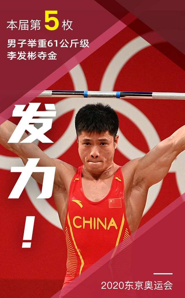 北京时间7月25日,2020东京奥运会男子举重项目61公斤级决赛在东京国际论坛大楼进行,中国运动员李发彬以抓举141公斤,挺举172公斤,总成绩313公斤,战胜印尼老将伊拉万,拿到了中国代表团在本届东京奥运会的第五枚金牌,同时也是中国举重队本届奥运会的第2枚举重金牌。其中挺举和总成绩分别创造了奥运会纪录。