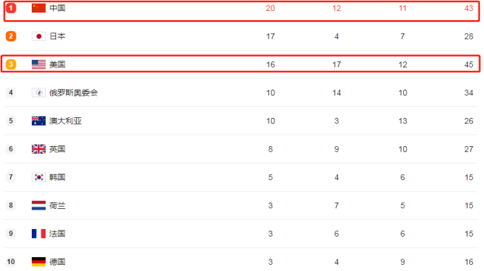中国目前拿到20枚金牌,排在第一位,而美国只拿到16枚金牌,就算美国的田径项目有优势,但想要在短时间内在金牌数量上超越中国队,难度也很大。而中国女排是2016年里约奥运会冠军,因为迟迟没有找到最好状态,加上朱婷有伤在身,所以,女排才在东京奥运会上遭遇3连败。
