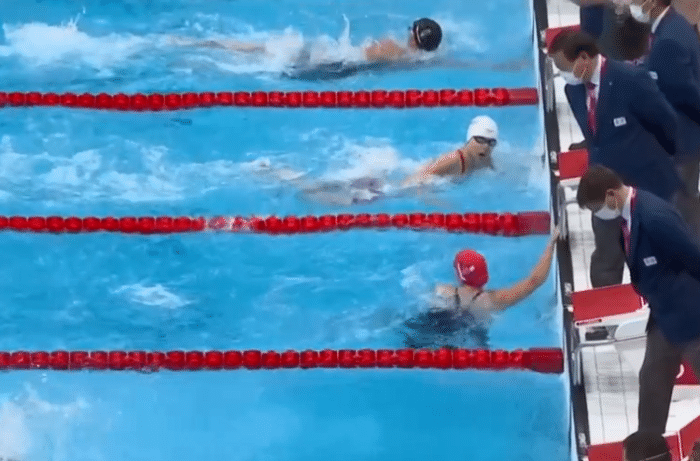 有意思的是,比赛中美国选手的泳镜掉落,她也是只能坚持去游,比赛中出现一些突发情况,队员们也是要努力适应和解决。