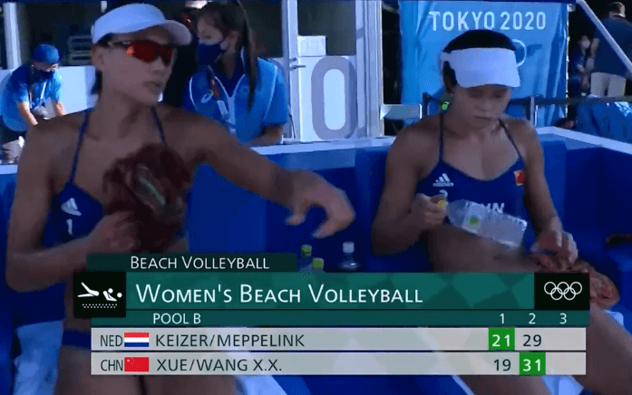 第二局开始,中国组合进攻有所起色,薛晨连续打出了高难度的扣球,救回了一些不可思议的球,但是这样的神仙球很难成为常规武器,难以持久,荷兰队死死咬住比分,在本局末段19-18反超比分,中国组合被迫叫出暂停,暂停过后,中国组合顽强的将比分追平,双方就此展开拉锯战,比分一度打到25-25,中国队始终处于被动拯救赛点的局面,直到26-25,中国队终于争取到了主动身位,比分多次打平之后,随着薛晨的一次漂亮拦网和王鑫鑫的精彩扣球之后,两人终于以31-29拿下第二局。