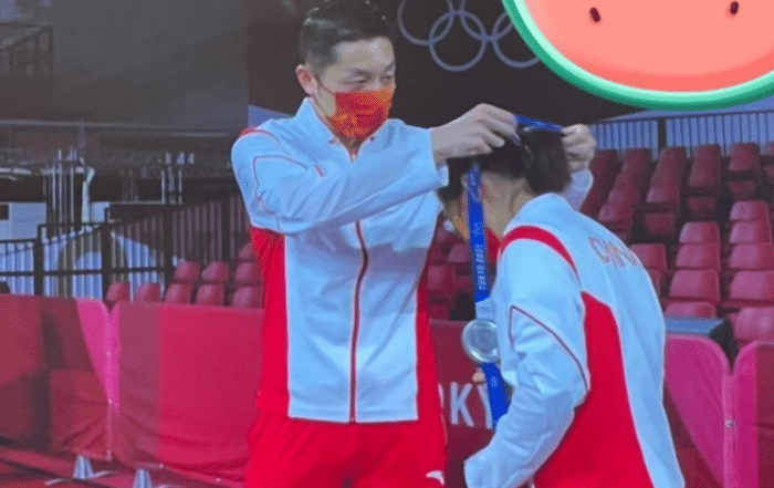 赛后的颁奖仪式上,由于本届奥运会需要自己颁奖,因此许昕和刘诗雯效仿了很多双打组合的颁奖方式,给对方挂上了这枚奖牌。先是许昕给刘诗雯挂,随后刘诗雯给许昕挂。虽然成色不是金色,但在给对方挂奖牌的过程中,隔着口罩,依然可以看到两人的笑容。