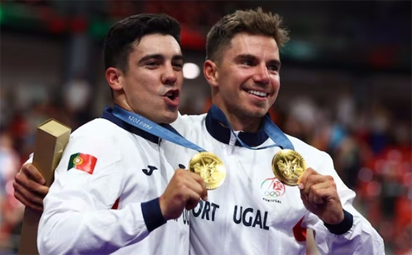或许是过于激动,获得金牌的葡萄牙组合合雷陶和奥利维拉,在颁奖仪式上做了C罗经典的庆祝动作“siu”。 随后,雷陶也在个人社媒上表示:“请把这个传递给我的偶像,C罗!”
