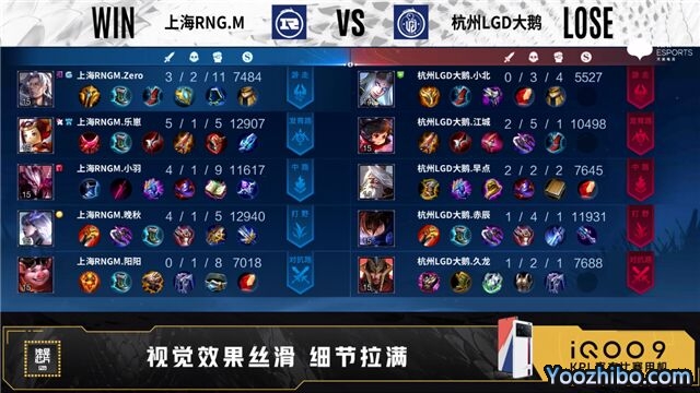 第五局,杭州LGD大鹅选出铠加关羽双刺客,上海RNG.M则选出了马超阿古朵体系,开局6分钟,中路一波团战,上海RNG.M2换3,打散了杭州LGD大鹅,顺势拿下中路一塔。随后的团战,上海RNG.M与杭州LGD大鹅势均力敌,并未建立起优势。13分钟,迎来转折点,上海RNG.M在暗影暴君处,0换2,顺势推掉对方中路二塔,拿下暗影暴君。此时,局势逐渐向上海RNG.M有利。最终,上海RNG.M凭借一波1换4的团战,推掉了杭州LGD大鹅水晶,拿下了比赛胜利。