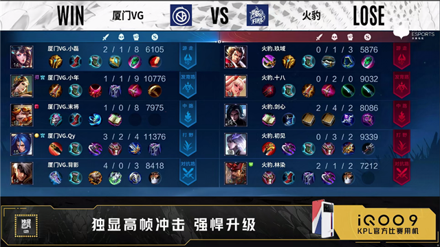 24直播网讯 北京时间07月01日2022年KPL夏季赛常规赛第二轮第一周第二日第一场,由厦门VG对阵火豹,以下是本场比赛快讯: