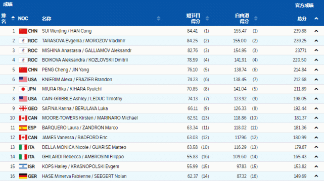 也确实是这样的,质疑的人往往不会去看裁判的具体打分环节,自由滑中隋文静和韩聪技术分78.61分,节目内容分76.86分,其中超高难度的捻转四周为他们在和三组俄奥队选手竞争中拿下了优势分数,所以虽然有小失误,但裁判在赛后的扣分也是实打实的。如果没有隋文静的小失误,表现自由滑完美的话,那么葱桶组合的优势将很大,而这次仅仅领先第二名0.63分,这么微弱的优势也是有原因的,就是已经扣了失误的分数。