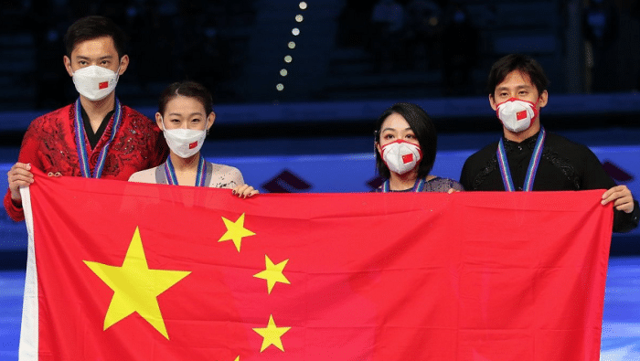 比赛结束之后,隋文静和韩聪也被问到了失误却拿金牌被质疑的话题,其中韩聪霸气进行回应,称:“在今天的比赛中,我们做出了4周的难度,是全部选手中最难的,我相信裁判的分数。”同时韩聪也表示:“如果每场都质疑裁判打分的话,那么4年前在平昌我们是否也接受了正确的打分呢?对于打分有质疑很正常,但我们信任裁判的公正性。”