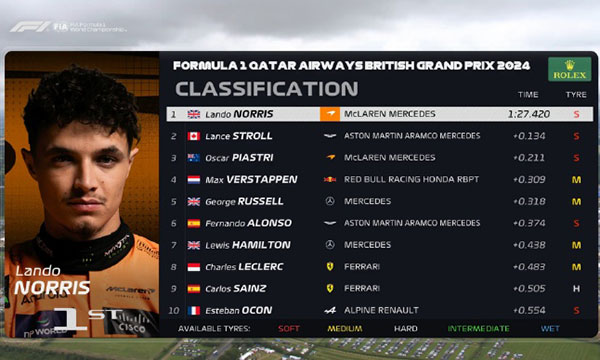 - 【录像】[腾讯]2024F1英国大奖赛第一次练习赛 圈速2024-07-06 10:48:42