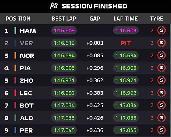 0.003秒绝杀!汉密尔顿杆位创历史,周冠宇第五:冲击领奖台