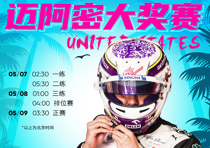 F1迈阿密站,从北京时间5月7日开始一练和二练,5月8日进行三练和排位赛,5月9日将会进行F1迈阿密大奖赛正赛,也期待周冠宇的表现。