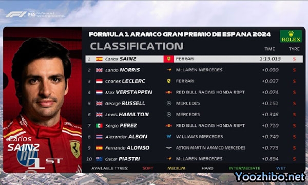 24直播网讯 北京时间06月23日,2024F1西班牙大奖赛第三次练习赛,主场作战的塞恩斯凭借1:13.013的成绩拿到三练头名,诺里斯和勒克莱尔位列第二和第三,法拉利在周六的赛车状态要比周五有不小提升。