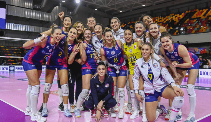 来源:24直播网02-16 21:1624直播网讯02月16日意甲第18轮已经正式落下帷幕,意大利女排联赛一共有26轮,如今仅剩8轮,各队的竞争还是很激烈的,有力争常规赛冠军,也有卡位需求的队伍,还有的球队力争保级。目前科内利亚诺以17胜1负排名第一,朱婷和姚迪所在的斯坎迪奇位居第二,缪伊雯新东家皮内罗洛处于降级区,排名倒数第二。按照意甲的规则,1-8名参加季后赛,倒数两名球队降级到意乙联赛。