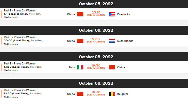 中国女排第二阶段的对手和赛程:
