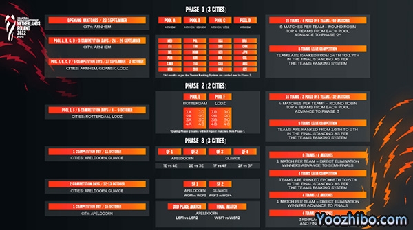 第一阶段小组赛,24支队伍分成A、B、C、D四组,每组6支队伍单循环,小组前四名晋级複赛。第一阶段成绩带入第二阶段。