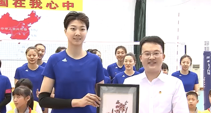 中国女排参加活动!队长袁心玥剪发,获赠礼物,蔡斌:进军总决赛