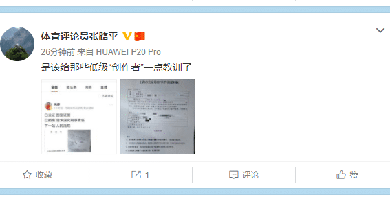 体育评论员张路平:“是该给那些低级“创作者”一点教训了。”