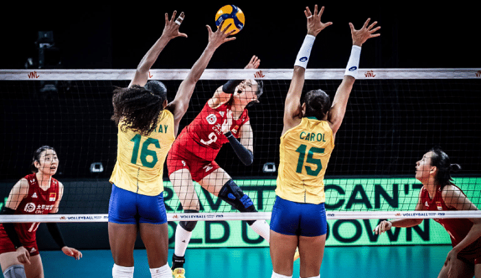 来源:24直播网06-09 15:4224直播网讯 今天中国女排打出了本届世界联赛最佳的表现,她们以3-2逆转击败排名第三的巴西队。不同于0-2落后还让对手有4个赛点,逆转击败德国队,这次中国女排遇到的是世界联赛12冠王的巴西队,实打实的主力出战,拥有加比等人。在赛前被看衰会吃到5连败,比赛期间在先输一局的情况下,中国女排在张常宁的带领下一度2-1反超,通过决胜局的表现,以总分3-2逆转击败巴西队,张常宁轰下36分,个人世界大赛的第二高分,也是本届世界女排联赛的个人单场第二高分,恭喜张常宁。