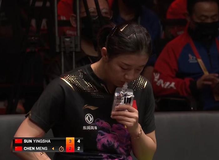 比赛开始后,陈梦率先进入状态,11:4拿下第一局的胜利,不过很快孙颖莎就在第二局还出了一个相同的分数扳平了大比分。第三局比赛,孙颖莎以11:8拿到了胜利,随后的莎莎势不可挡在第四局咬住,12:10拿到了第四局胜利,大比分变成了3:1.