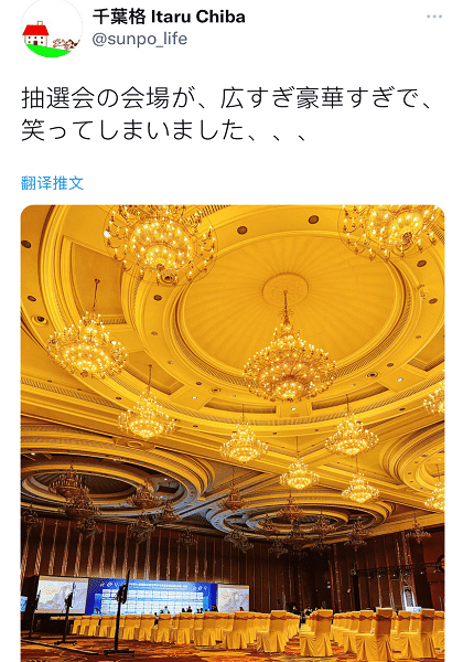 日本著名体育摄影记者千叶格抵达现场之后晒出照片,不禁感慨是抽签仪式的现场太豪华了。