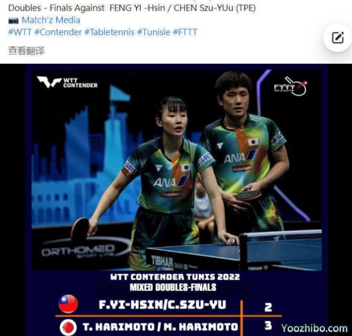 这是混双决赛,日本选手张本智和与张本美和联手3-2击败了中国台北的冯翊新和陈思羽,赛后的社交媒体宣传中使用了失误的国旗,甚至还被相关的媒体进行转发和报道,一时间引发争议。