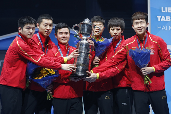 中国男子乒乓球队获得过男团冠军的年份:1961年第26届、1963年第27届、1965年第28届、1971年第31届、1975年第33届、1977年第34届、1981年第36届、1983年第37届、1985年第38届、1987年第39届、1995年第43届、1997年第44届、2001年第46届、2004年第47届、2006年第48届、2008年第49届、2010年第50届、2012年第51届、2014年第52届、2016年第53届、2018年第54届。