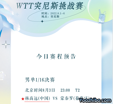 来源:24直播网08-03 10:0224直播网08月03日讯 ,WTT突尼斯挑战赛,林高远将会迎来亮相之战,男单1/16决赛对阵葡萄牙的蒙泰罗。这也是林高远在WTT冠军赛布达佩斯站男单决赛折戟之后的第一次比赛,国乒大部队已经回国,这次来到突尼斯之后,男单层面等于是林高远单独带队出战,也是他证明自己的好机会。
