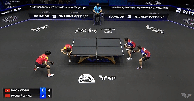 这场比赛王楚钦和王曼昱打得并不容易,第一局,王曼昱和王楚钦以11-6先下一城。黄镇廷和杜凯琹用11-8和11-7强势反超大比分。关键的第四局,双方展开鏖战,4-4平之后王楚钦和王曼昱连得2分,但很快被对手8-7反超。王楚钦和王曼昱以11-9艰难取得这一局的胜利,大比分来到2-2平。