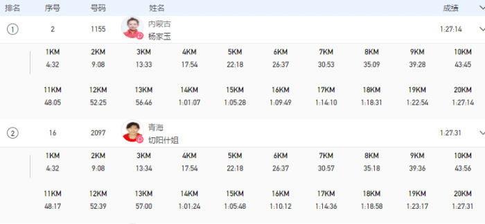 切阳什姐这次参赛被寄予厚望,可惜的是在女子20公里竞走的项目中,切阳什姐拿下银牌,输给了杨家玉。比赛结束之后切阳什姐哭了,她表示有不少人说自己总是可以获得银牌,也是很幸运的,但自己想说的是真的不想要这样的幸运,想要打破这个东西,却又是亚军。切阳什姐此前总是被杨家玉和刘虹压制,这次有夺冠的最好机会,却还是丢掉了冠军。