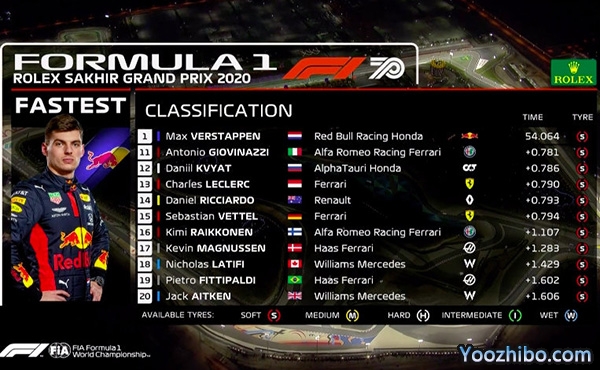- 【录像】[腾讯] 2020F1萨基尔大奖赛第三次练习赛 圈速2020-12-05 23:12:15