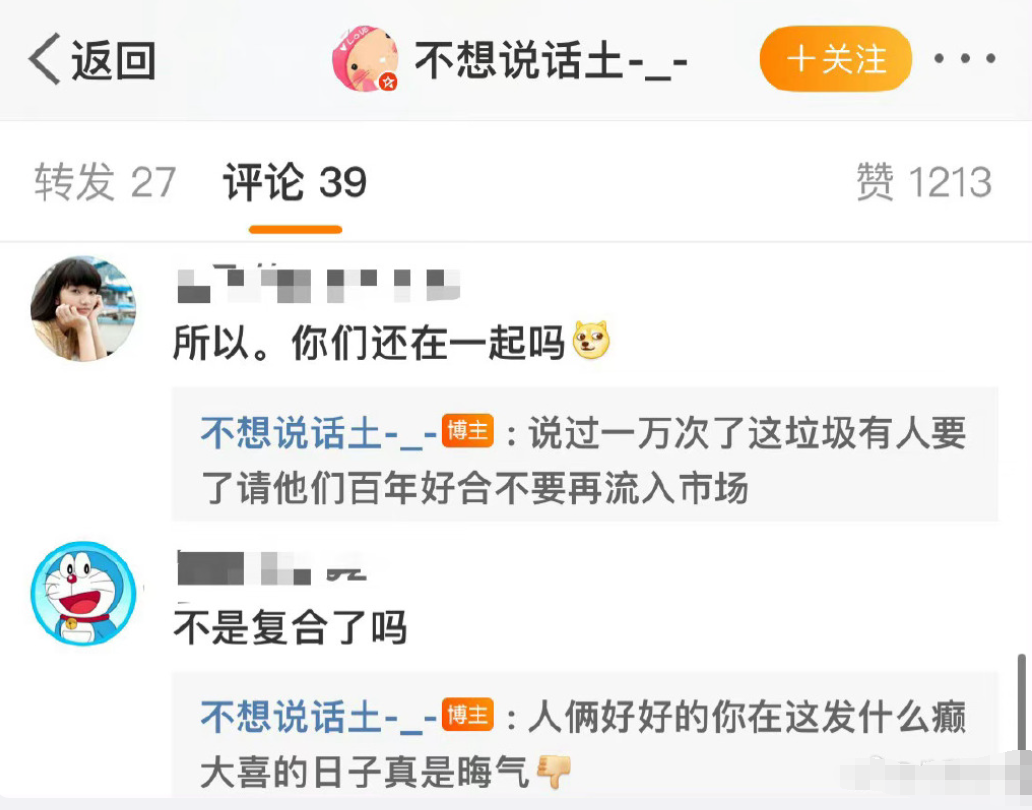 渴望得到答案的网友很多, 也有人去问到土土,希望得知徐嘉余和王冰冰是否还在一起?土土内涵两人还在一起,还表示人俩(徐嘉余和王冰冰)好好的你在这发什么颠。之后土土用垃圾来形容,称希望百年好合。