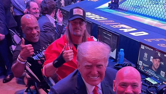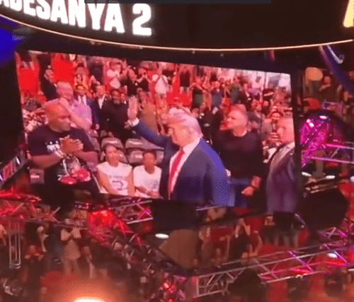 众星云集!特朗普观战UFC287,泰森心情好,李景亮阿奎罗助威