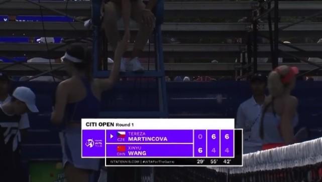 另外一位中国金花王欣瑜,首盘比赛曾6-0“送蛋”捷克好手马丁科娃,但次盘王欣瑜被对手熟悉了球路之后,4-6失利。关键的决胜盘,王欣瑜曾一度握有3-1、40-15的优势。但她却突然没了手感意外崩盘,被对手6-4完成大逆转。