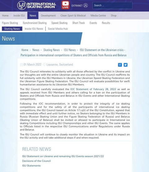 来源:24直播网03-02 15:3824直播网03月02日讯 时局动荡,也直接影响到了体坛,如今从国际足联、欧足联、世界田联、国际篮联、国际滑联、网球四大满贯赛事委员会及ATP、WTA和ITF等,都宣布了全面制裁俄罗斯,不允许他们的代表队参加旗下比赛,甚至还有的要求俄罗斯和白罗斯两国运动员不允许代表自己的国家出战,想要参赛,只能以中立的名义出战。可以说,在世界体坛的历史上,这次的制裁是史无前例的。