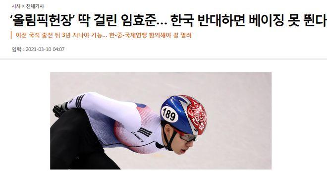 但很显然韩国方面是不会接受这位他们眼中的“叛徒”能够称心如意的,据韩联社报道,韩国体育协会的一位内部人士表示,“(韩国体协)大多数人的意见是不可以,认为这是明目张胆抢奖牌的意思,如果允许林孝俊参赛,相当于是将韩国顶尖选手拱手相让给竞争国家。”而林孝俊本人在近日做出了回应,他声称:“(改换国籍)与参加奥运会无关,因为想延续自己的短道速滑生涯,所以选择了去中国。”