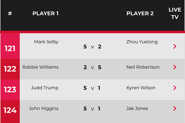 24直播网讯:北京世界10月17日,2020年斯诺克英格兰公开赛继续在米尔顿-凯恩斯进行,1/4决赛特鲁姆普面对威尔逊以5-1大胜,打进四强将迎战同样5-1过关的希金斯。