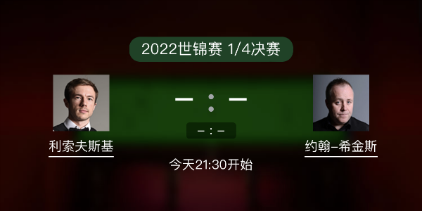 斯诺克世锦赛1/4决赛上:04月26日 21:30 利索夫斯基vs希金斯