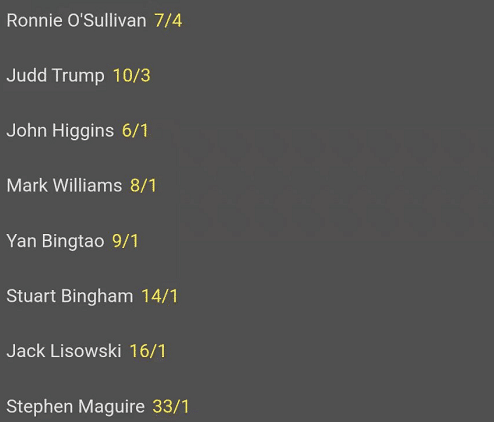 从赔率来看,奥沙利文以1赔1.75高居榜首。奥沙利文在本届赛事打出了稳健的表现,第二轮一度打到艾伦生无可恋,怒砸球桌。而且在塞尔比和罗伯逊出局之后,奥沙利文在8名选手中排名最高。排名第二的是特鲁姆普,赔率是1赔3.33,显然已经被奥沙利文拉下不少。