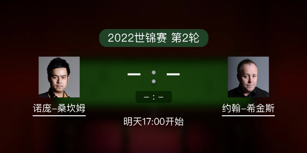 斯诺克世锦赛第2轮上:04月24日 17:00 桑坎姆vs希金斯