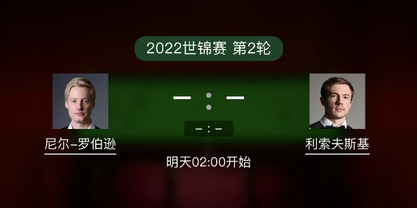 斯诺克世锦赛第2轮上:04月24日 02:00 尼尔-罗伯逊vs利索夫斯基