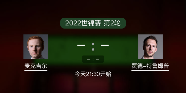 斯诺克世锦赛第2轮上:04月23日 21:30 麦克吉尔vs特鲁姆普