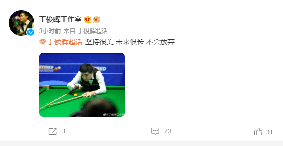 世锦赛首轮遭淘汰!丁俊晖发声不放弃,转发《海阔天空》鼓励自己