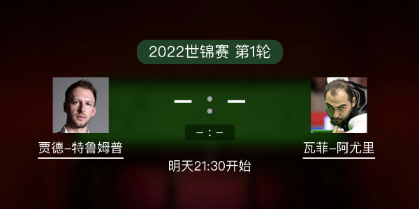 斯诺克世锦赛第1轮上:04月20日 21:30 特鲁姆普vs瓦菲-阿尤里