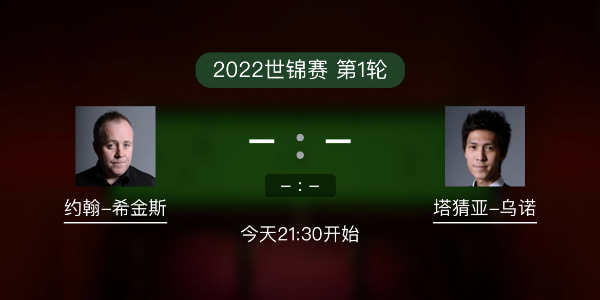 斯诺克世锦赛第1轮上:04月19日 21:30 希金斯vs塔猜亚-乌诺