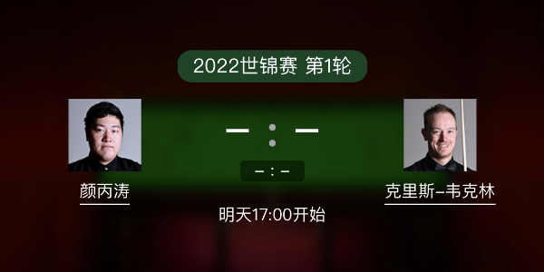 斯诺克世锦赛第1轮下:04月20日 02:00 颜丙涛vs韦克林