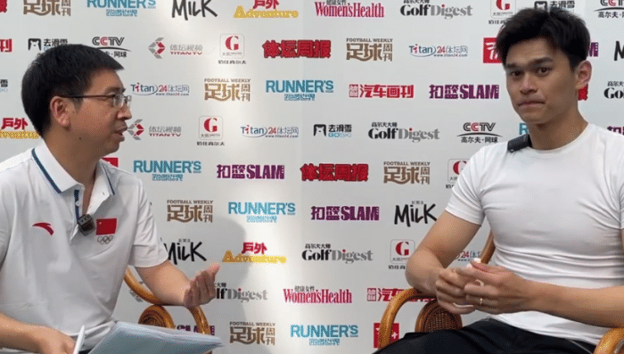 被问到是否对于无法参加当时的东京奥运会感到遗憾,孙杨表示确实很遗憾,当时因为禁赛没有办法参加选拔赛,自己在队内随便一测试,成绩就是3分43秒,当时的状态非常好,200米自由泳的成绩在44秒小的水平。