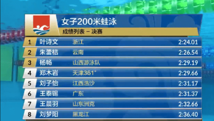 暖心!叶诗文200米蛙泳夺冠,1金1银收官,赛后寄语张雨霏
