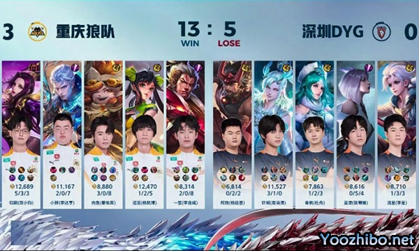 10分半重庆狼队破掉中路高地塔,黑暗暴君处重庆狼队形成包围圈将对方一网打尽,团灭深圳DYG后重庆狼队顺利推掉水晶,来到赛点。