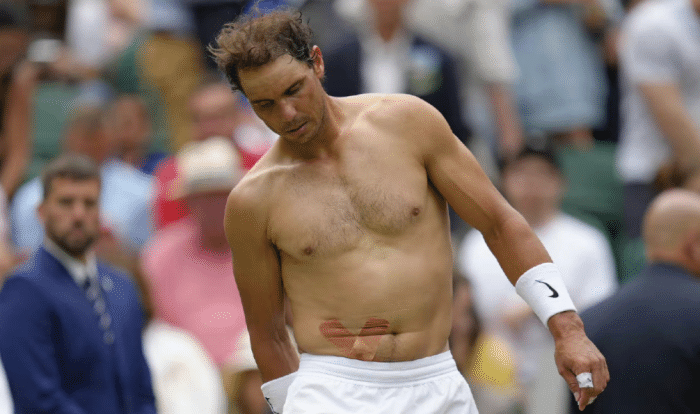 在与弗里茨的半决赛中,一直强忍腹部疼痛出战的纳达尔,伤病程度加深。第二盘,他一度申请医疗暂停,而看台上的纳达尔父亲做出激烈的动作手势,要求纳达尔退赛。纳达尔不为所动,继续比赛最终3-2逆转弗里茨,晋级温网4强。但赛后,来自马卡报的报道,纳达尔被检测出腹部肌肉7毫米的撕裂。不过当时,纳达尔还希望继续比赛。
